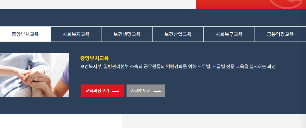 공식 홈페이지에 접속후 교육과정신청 -> 분야별교육소개 (자신이 원하는 분야 선택) -> 공통역량교육 -> 교육신청 순으로 클릭을 하면 교육과정을 신청 할수 있습니다.
