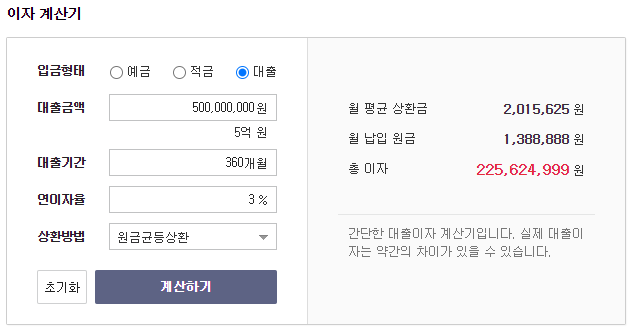 바로가기 -> 다음 주택담보대출 이자계산기, 네이버 주택담보대출계산기