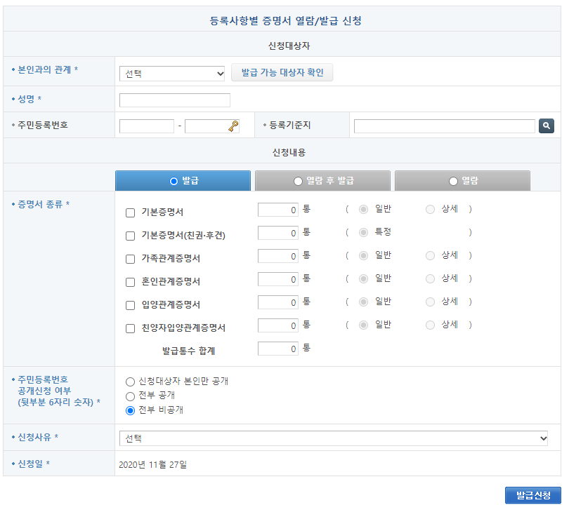 바로가기 -> 가족관계증명서 인터넷 발급