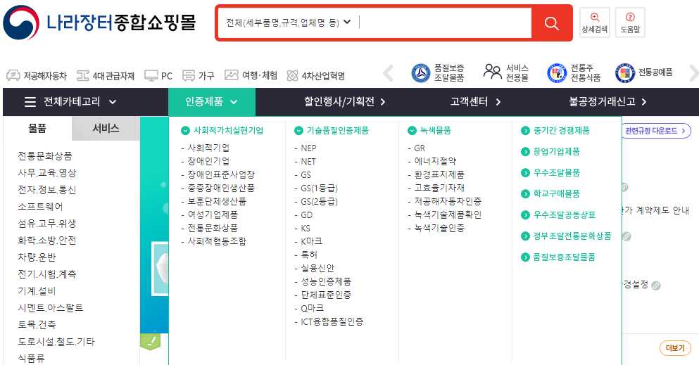 바로가기 -> 나라장터 종합쇼핑몰