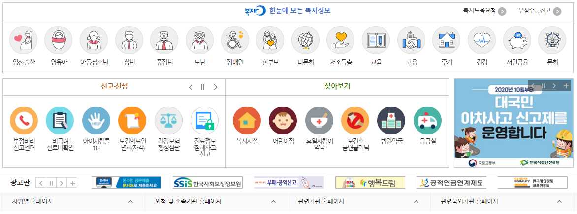 보건복지부 홈페이지 에서는 한눈에 보는 복지정보와 신고신청, 찾아보기 등이 있습니다. 찾아보기 에는 유용한 서비스가 있습니다. 복지시설, 어린이집, 휴일지킴이 약국, 보건소 금연클리닉, 병원약국, 응급실등 쉽게 찾아 볼수 있도록 구성 되어 있습니다.