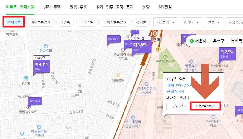 아파트 평수계산법 네이버 부동산 시세 에서 확인 하는법